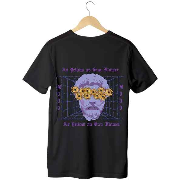 A surreal clash of classical thought and blooming emotion—where stone meets sunflower mood.