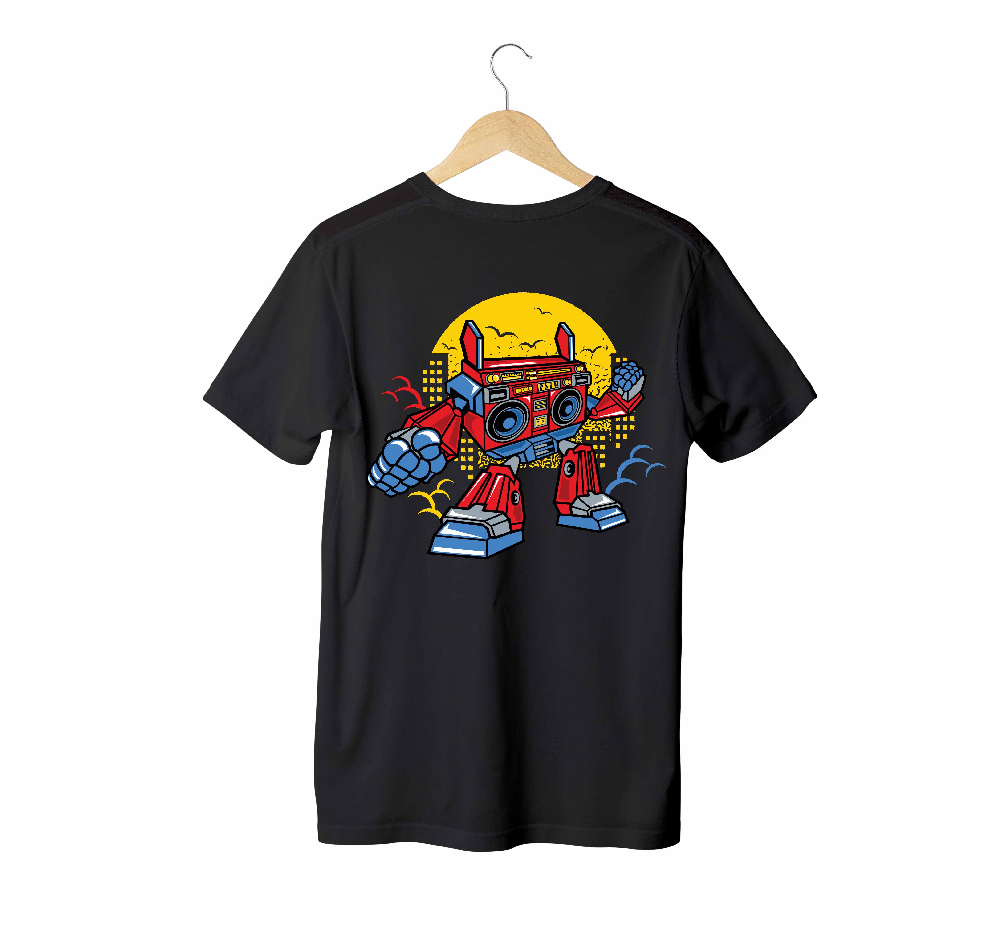 A bold fusion of retro robots and hip-hop culture, this vibrant design brings city vibes and street energy to life. Perfect for those who love to stand out with unique style