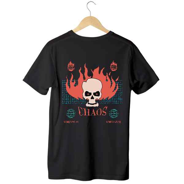 Ignite your style with chaos. This fiery skull design speaks to rebels who wear their boldness with pride. Add it to your wardrobe and embrace the heat.