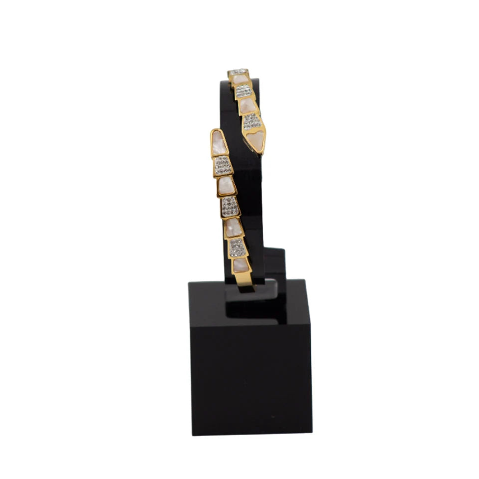 The serpent motif is carefully sculpted to highlight every curve and detail, creating a bracelet that feels both unique and luxurious.