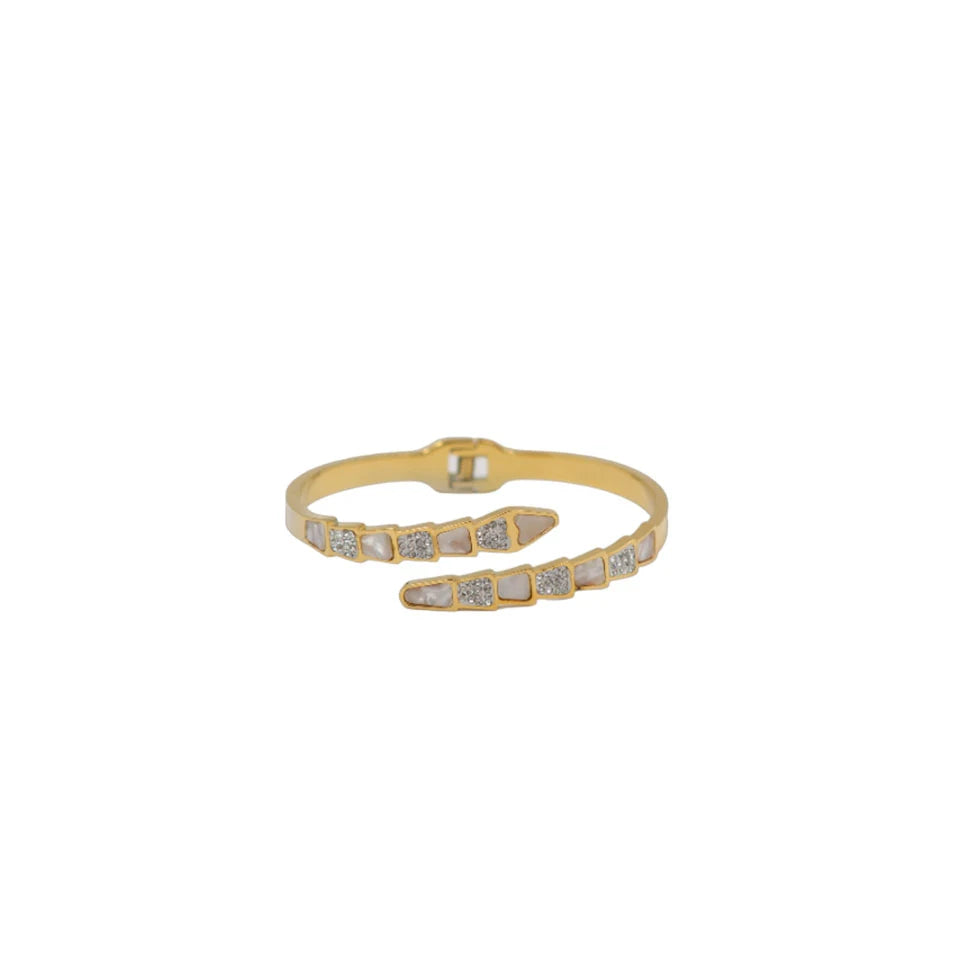 Unleash your inner confidence with our serpent-inspired golden bracelet, a piece that exudes mystery and sophistication. With its intricately detailed design and lustrous gilded finish, this bracelet is a striking statement accessory for any occasion.