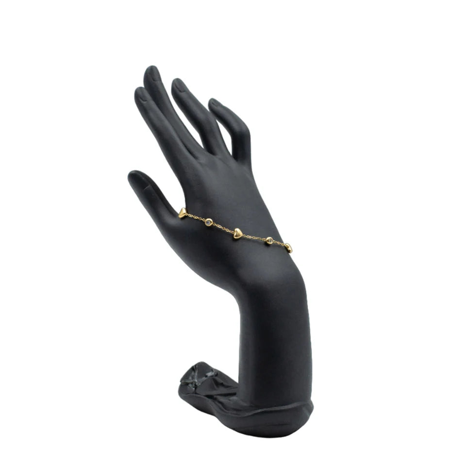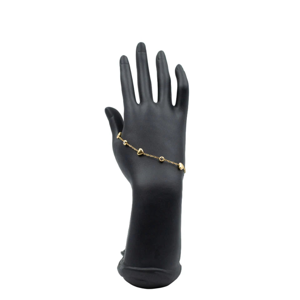 Wrap your wrist in a blend of grace and affection with our Hearts and Beads Golden Charm Bracelet. Designed with delicate heart motifs paired with polished golden beads, this bracelet radiates charm, elegance, and warmth.