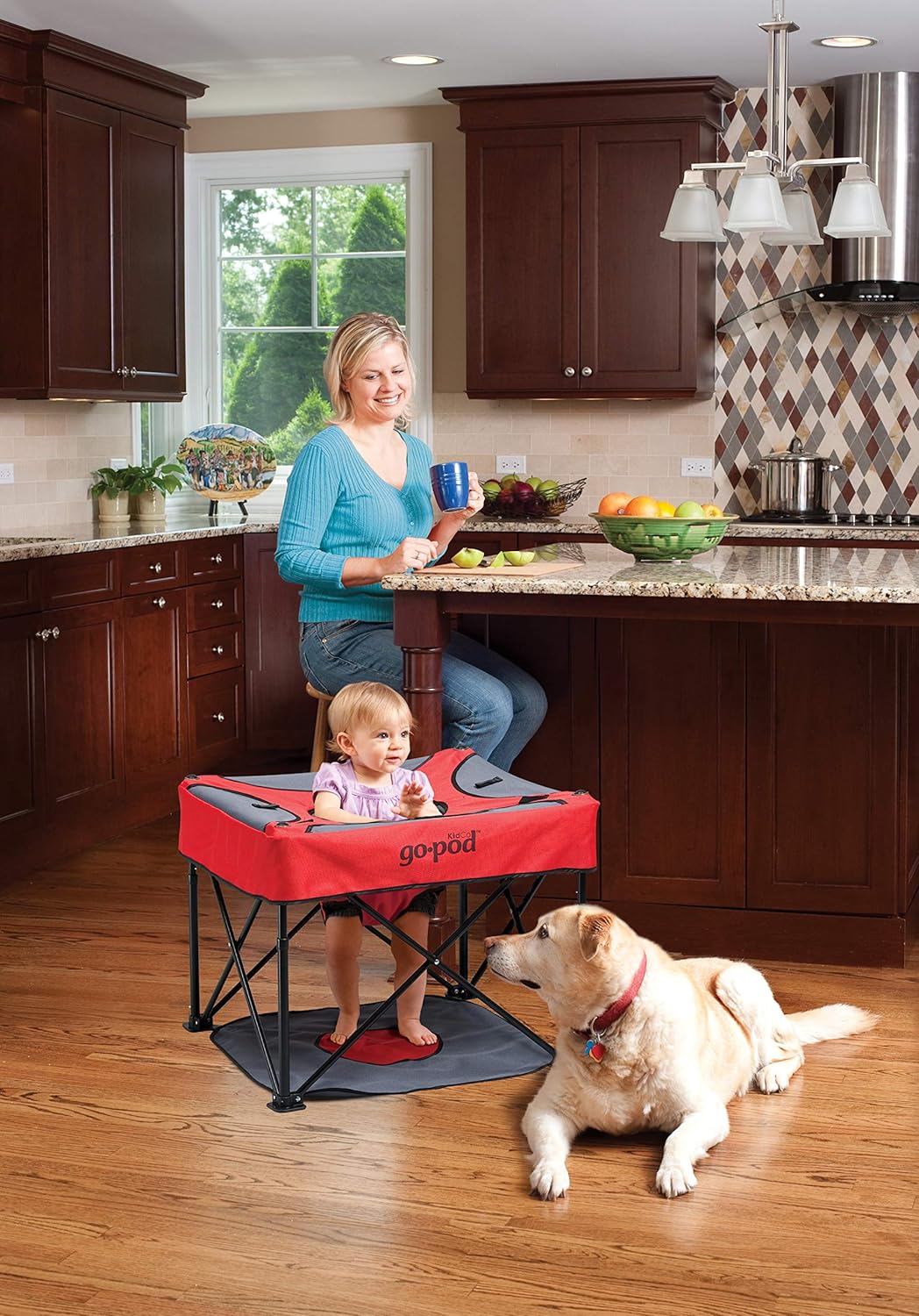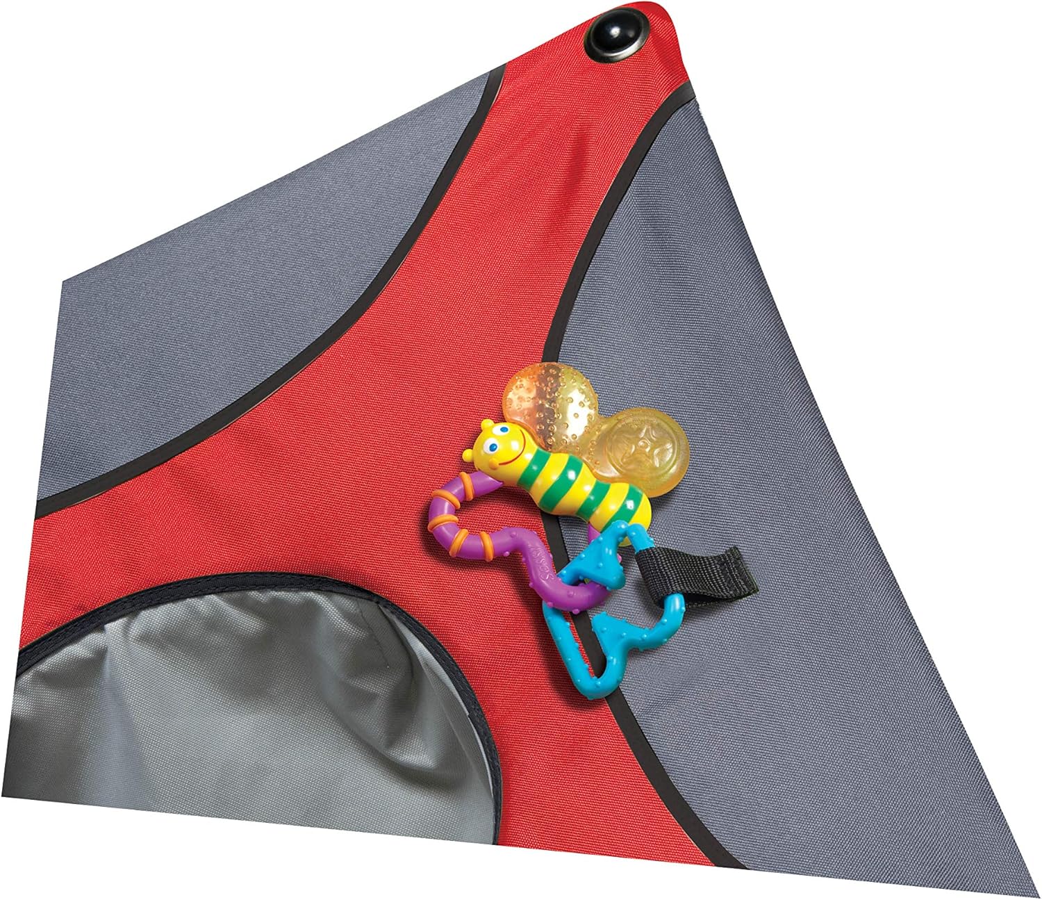 Portable light weight 7 pound activity seat for baby is designed to fold and go! The attached floor pad keeps baby’s feet on a clean surface whether at the camp fire, on a picnic or watching the big kids play sports. Four adjustable heights to grown with your baby. Included a snack and drink holder! Five nylon loops allow you to attach baby’s favorite toys. At home, or on-the-go, your baby will be one happy camper! Includes storage/carry bag!